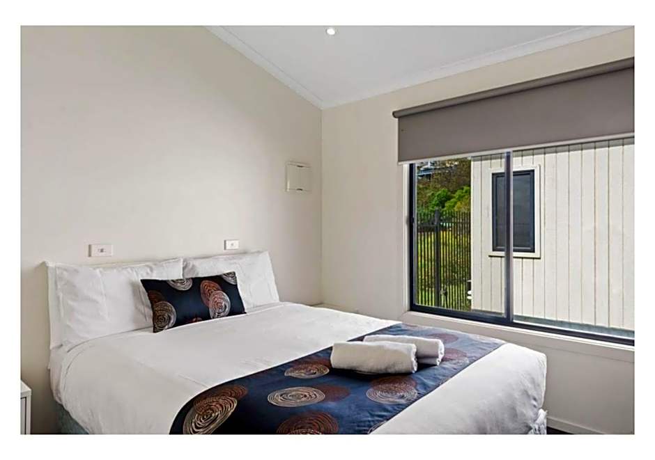 This spacious superior cabin features a balcony, a fully equipped kitchen and outdoor furniture. Linen hire available onsite.